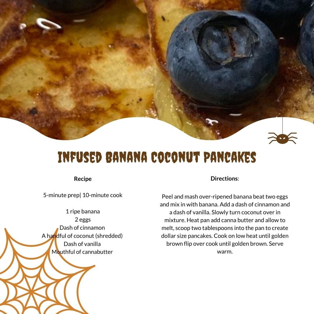 Try out this infused Banana Coconut Pancakes With the weather cooling down, warm up some pancakes and grab the syrup. These pancakes can be made anytime of day and you can switch up the way you infuse them using Cannabutter or Oils. Have you tried any of our recipes? Please comment below and let us know how you liked them, we look forward to your feedback. (Photo and recipes credits go to -Anita Dereen /Weedblog.com) #grassachusetts #masswellspring #edibles #cannalife #health #breakfast